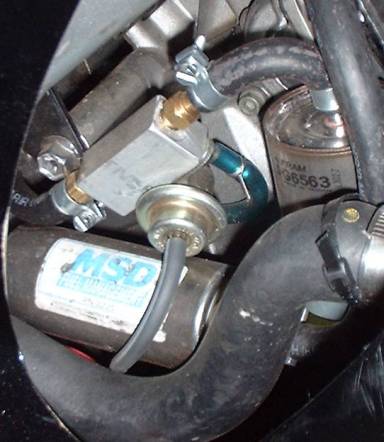 filter, the fuel hits the regulator that I set to 3bar via the clamp